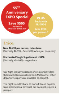 After the success of our inaugural Norfolk Island-hosted tour in 2025, I’m delighted to confirm we’re doing it again in 2026.